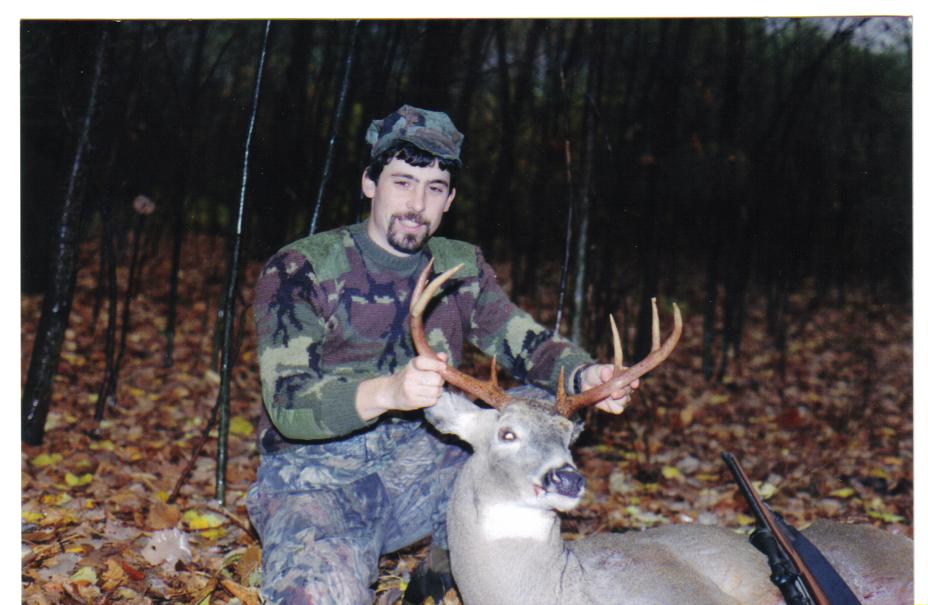 Around 8 o’clock I caught some movement to my right. I could see that it was a deer trotting up the hill. I found it in my binoculars and identified it as a spike-horn. When he got closer I tried getting a picture of him, but he wouldn’t stop. When he finally stopped he was behind a tree about 5 yards in front of me. When he came out the other side I snapped a picture. Unfortunately I got his entire body except his head which was behind a tree. The rest of the morning passed quickly. I climbed out of the tree a little after 10 and headed to work for a few hours.